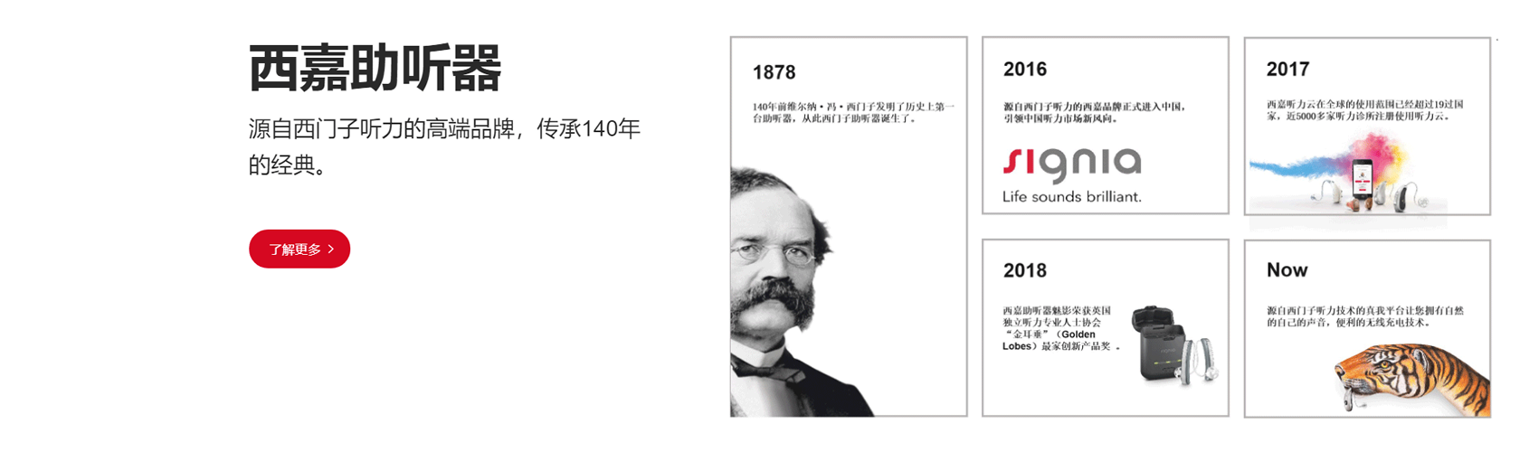 金華市康全醫(yī)療器械有限公司專業(yè)經(jīng)營西嘉助聽器,西嘉助聽器源自西門子聽力,傳承140多年的經(jīng)驗技術(shù),在聽力研究、助聽器研發(fā)和生產(chǎn)等領(lǐng)域享有盛譽。其足跡遍布全球100多個國家和地區(qū),不斷創(chuàng)新,竭盡推動聽力行業(yè)發(fā)展。西嘉助聽器繼承了西門子聽力逾百年的科技精髓,擁有強大的研發(fā)創(chuàng)新能力。我們將利用這些先進的產(chǎn)品技術(shù)為金華地區(qū)聽力損失患者提供專屬個人的聽力解決方案,為您解決聽力上的煩惱,重回有聲的精彩聽世界。